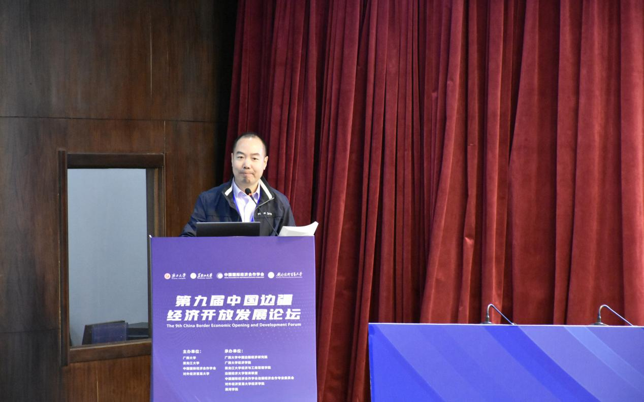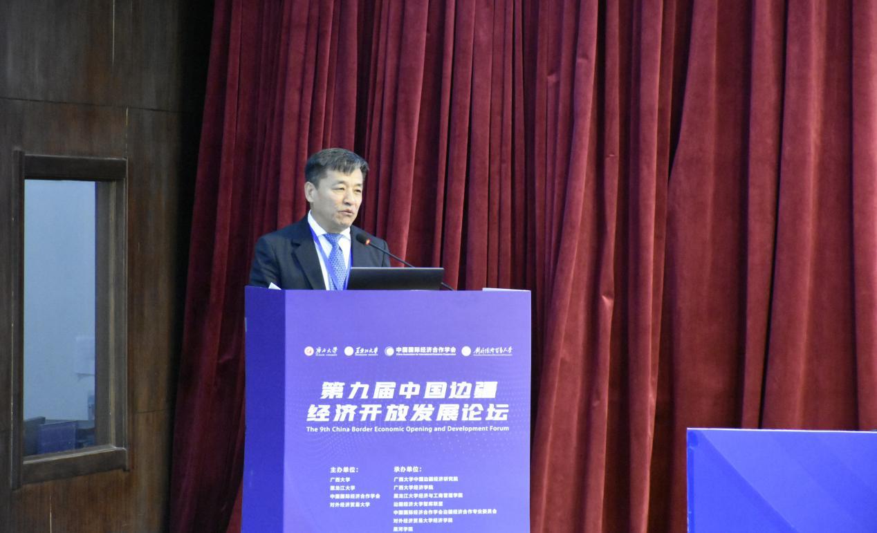 广西大学中国边疆经济研究院院长、中国国际经济合作学会副会长李光辉作主旨报告