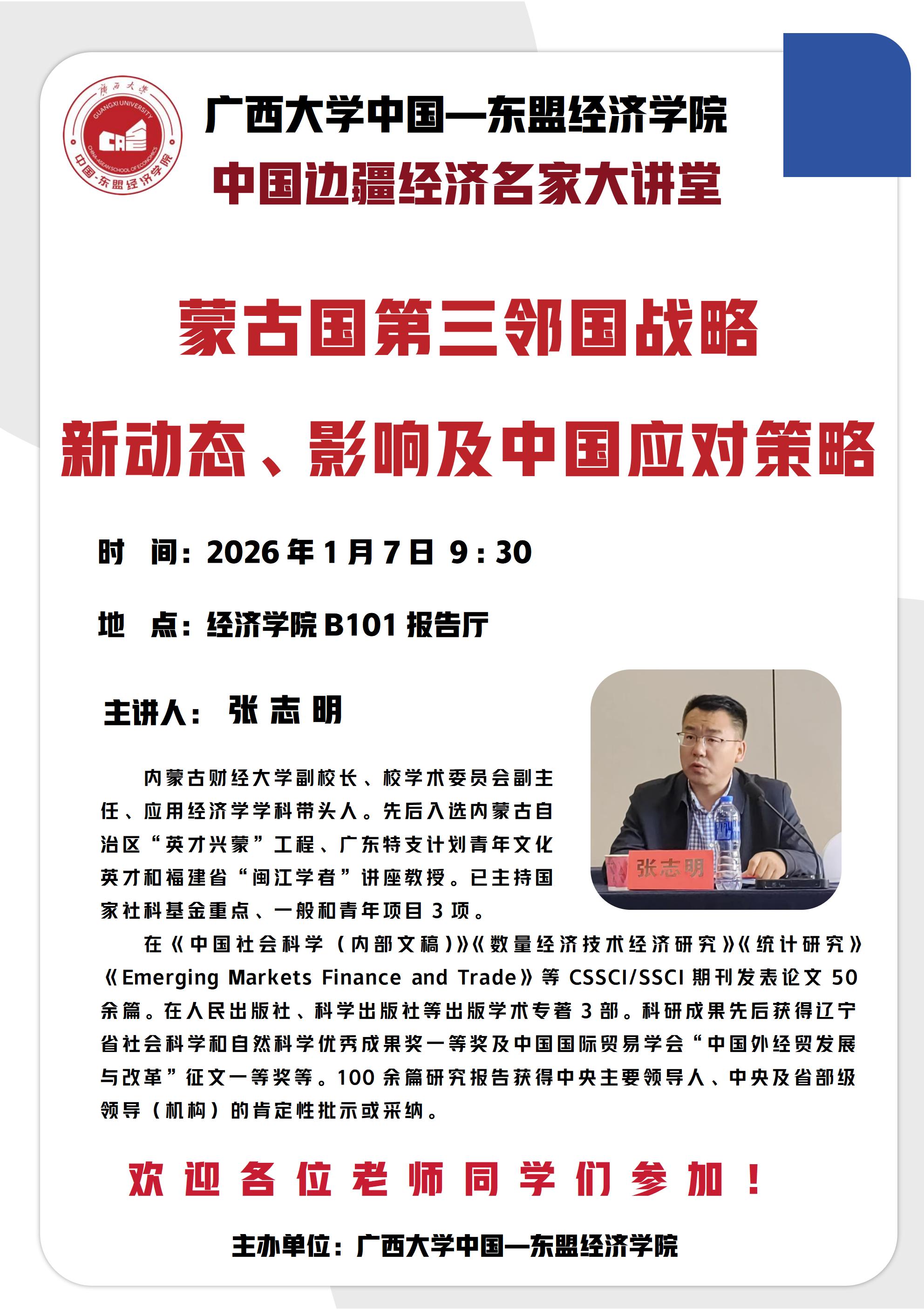 中国边疆经济名家大讲堂:蒙古国第三邻国战略新动态、影响及中国应对策略